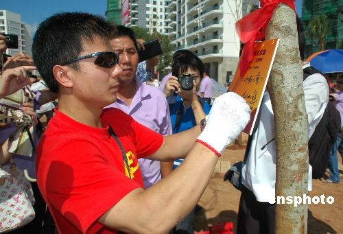 10月21日,參加“三亞城市精神評選暨奧運冠軍三亞行活動”的14位奧運會冠軍在三亞灣種下“冠軍林”。本次來三亞的主要是拳擊、跆拳道、舉重等力量型項目的奧運冠軍,包括張小平、鄒市明、陸永、陳燮霞等及悉尼、雅典兩屆前奧運會冠軍陳中等。中新社發(fā) 尹海明 攝
