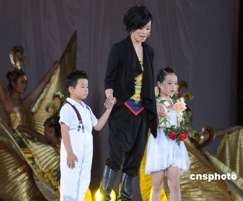 10月22日晚,第五屆中國—東盟博覽會暨第十屆南寧國際民歌藝術(shù)節(jié)晚會開幕,中國內(nèi)地知名女歌手毛阿敏身穿肚兜亮相。中新社發(fā) 蔣雪林 攝