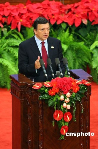 歐盟委員會(huì)主席巴羅佐在開幕式上講話。中新社發(fā) 廖文靜 攝
