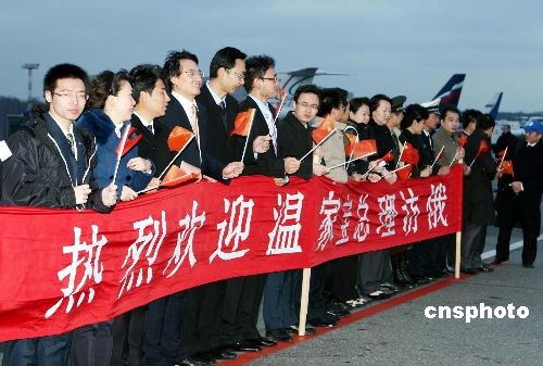 中國國務(wù)院總理溫家寶27日晚乘專機抵達(dá)俄羅斯首都莫斯科,開始對俄羅斯進行正式訪問,并參加中俄總理第十三次定期會晤。溫家寶在機場受到俄副外長博羅達(dá)夫金等俄方官員的熱情迎接并出席了歡迎儀式。中新社發(fā) 田冰 攝