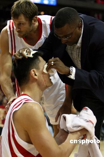 圖:姚明受傷血染賽場 火箭惜敗步行者
