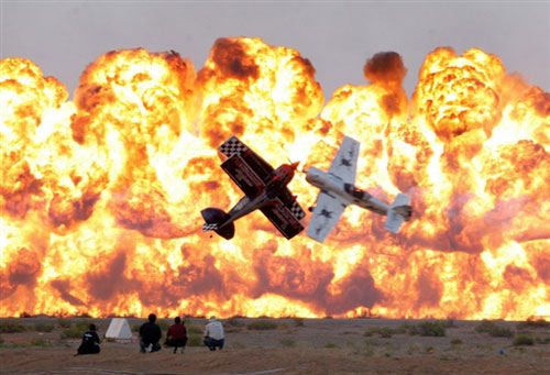 最牛的飛行——1月27日,在科威特國際機(jī)場舉行的艾因國際特技飛行展上,美國的TinStix飛行隊(duì)在進(jìn)行表演。