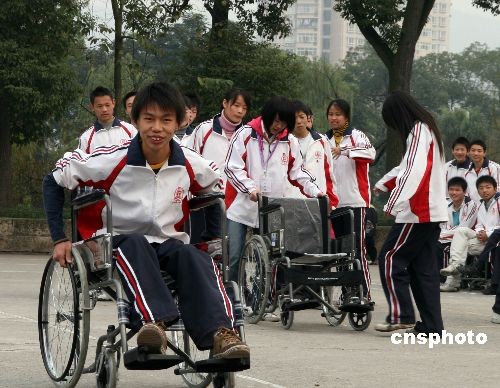12月2日下午,百余名重慶中學(xué)生參加由英國駐重慶總領(lǐng)事館文化教育處主辦的校園體驗(yàn)日迷你殘奧會(huì)。他們通過使用輪椅等殘障人士生活輔助工具進(jìn)行比賽,此次活動(dòng)旨在使學(xué)生們了解殘疾人、關(guān)愛殘疾人。中新社發(fā) 郭晉嘉 攝