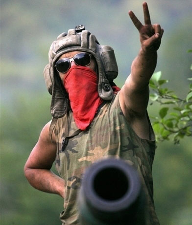 2008年8月14日,一名來(lái)自阿布哈茲的士兵在科多里峽谷對(duì)鏡頭舉起了象征勝利的手勢(shì)。