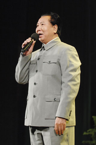 湘鄉(xiāng)人王金生是首個(gè)登臺(tái)進(jìn)行表演的特型演員,他一上臺(tái)就模仿毛澤東在開國大典時(shí)的經(jīng)典講話。“同志們好——”,王金生的“主席”口音一出,立馬將現(xiàn)場(chǎng)氣氛推向高潮,“主席好!”臺(tái)下觀眾熱情的配合,“人民萬歲——”,“毛主席萬歲!”作為“開場(chǎng)戲”,王金生成功地帶動(dòng)了現(xiàn)場(chǎng)觀眾,達(dá)到很好的互動(dòng)效果。