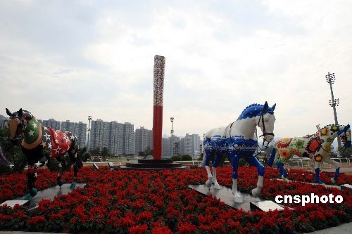 著名的香港沙田馬場,2008年成為首個迎接北京奧運圣火的奧運比賽場地,載入奧運史冊。為了打造香港“馬運之都”,香港將建立“奧運博物館”,位于沙田馬場中央“彭福公園”內(nèi)的“奧運圣火盆”,也將成博物館珍品。中新社發(fā) 潘索菲 攝
