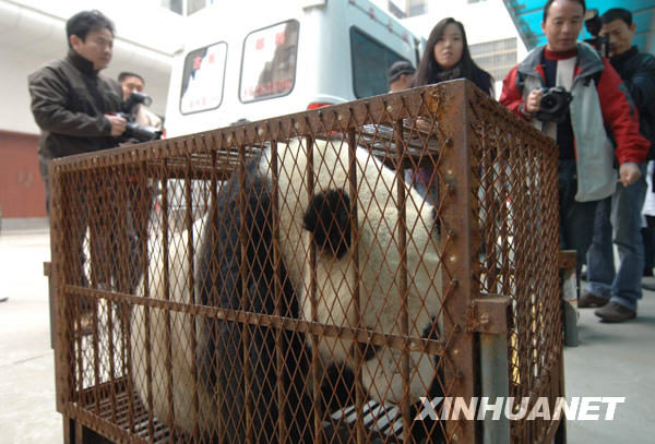 12月20日,大熊貓“小明”運(yùn)抵西安古城眼科醫(yī)院。