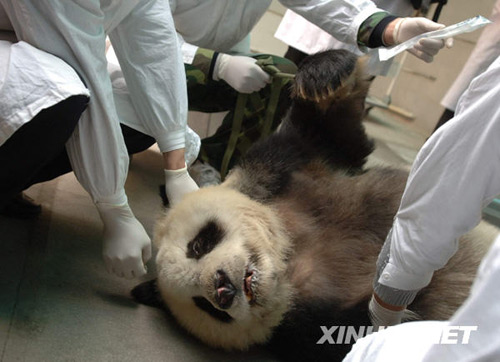 12月20日,醫(yī)務(wù)人員對大熊貓“小明”實(shí)施全身麻醉后進(jìn)行檢查。新華社記者 陳鋼 攝