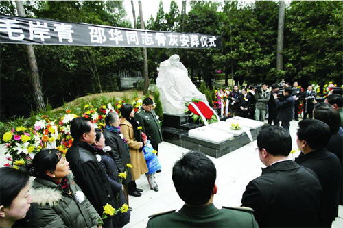 經(jīng)中央批準(zhǔn),毛岸青、邵華同志骨灰昨日(21日)下午由北京遷葬楊開(kāi)慧烈士陵園,永遠(yuǎn)地留在了媽媽楊開(kāi)慧烈士的身邊。“親愛(ài)的爸爸媽媽,今天我和妻子劉濱以及你們的孫子?xùn)|東,終于把你們送到了開(kāi)慧奶奶的身邊,實(shí)現(xiàn)了你們的遺愿!”在骨灰安葬儀式上,毛岸青、邵華的兒子毛新宇動(dòng)情地說(shuō)。省委書(shū)記、省人大常委會(huì)主任張春賢,省委副書(shū)記、省長(zhǎng)周強(qiáng)向毛岸青、邵華同志敬獻(xiàn)了花籃。