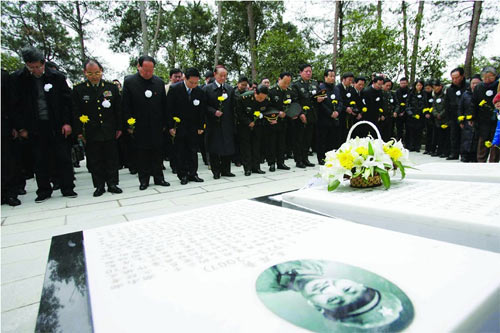毛岸青、邵華同志骨灰安放儀式,社會各界人士在墓前表達敬意和哀思。石禎專 攝