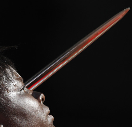 北京奧運會的標槍比賽中,肯尼亞運動員Nakhumicha Zakayo即將扔出手中的標槍。