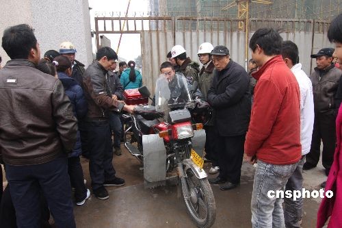 民工從事故現(xiàn)場出來。 中新社發(fā) 郭國權(quán) 攝