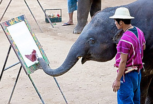 據英國媒體9日報道,泰國清邁有一群有藝術細胞的動物,11歲的亞洲象Lankam是其中一員,它已經創(chuàng)作了數百幅繪畫作品,最貴的一幅畫甚至賣到2萬英鎊。