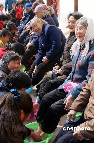 圖:河南濟源媳婦們?yōu)槠牌偶w洗腳(2)