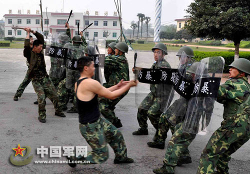 近期,成空雷達(dá)某團(tuán)根據(jù)駐地分散、社情復(fù)雜等特點(diǎn),定期組織警衛(wèi)分隊(duì)進(jìn)行模擬處突演練。他們挑選警衛(wèi)骨干扮成“歹徒”持械襲擊哨兵,逼真地模擬突發(fā)情景,警衛(wèi)分隊(duì)快速出擊制服“歹徒”。實(shí)戰(zhàn)化的演練,有效地提高了警衛(wèi)人員的防衛(wèi)意識(shí)和處置突發(fā)事件的能力。朱曉磊 曹九攝
