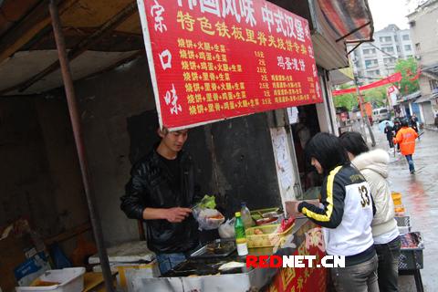 28日下午,毛毛雨。記者到長沙墮落街一探究竟,在問明來意后,帥哥淡淡一笑稱自己也聽房東說了紅網(wǎng)論壇上關(guān)于他的事,還告訴他在網(wǎng)上火了,自己感到很意外。帥哥自稱姓包,23歲,來自河南信陽農(nóng)村一單親貧苦家庭。對于為何年紀(jì)輕輕來賣燒餅的疑問,小包介紹說,這都是生活所迫,沒有辦法的事,并介紹了一些自己鮮為人知的身世。