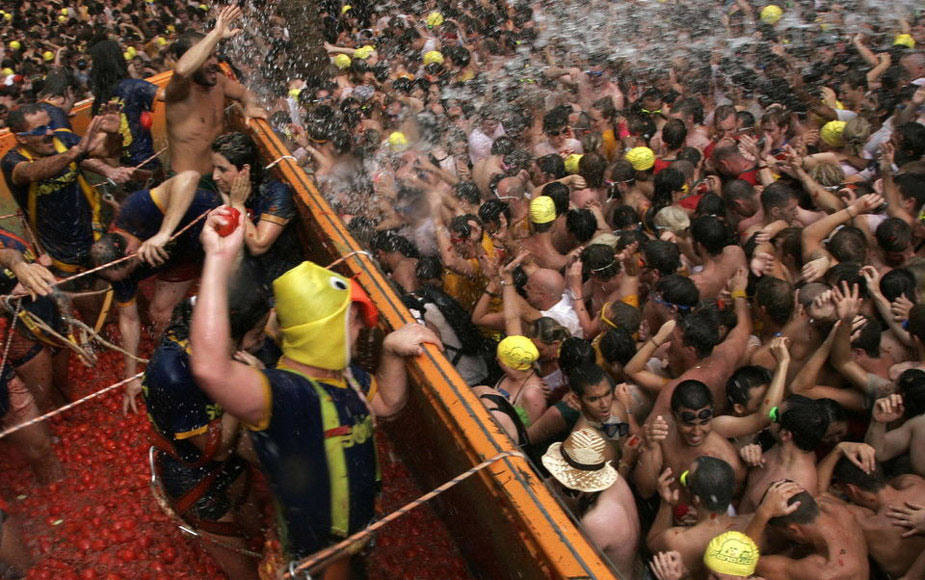 8月26日,西班牙東南部小鎮(zhèn)Bunol當(dāng)日迎來傳統(tǒng)的西紅柿節(jié)。大約4萬名狂歡者在1小時內(nèi)扔掉了11萬公斤西紅柿。來源:中國新聞網(wǎng)