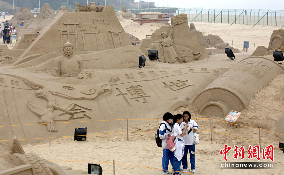 第三屆廈門觀音山沙雕文化公園于4月22日在廈門觀音山黃金沙灘投入試運(yùn)營(yíng)。本屆沙雕文化公園將以“暢游歷史”及“世博文化”為主題,共匯集70余座沙雕作品,規(guī)模繼續(xù)在亞洲稱雄。本次2010年觀音山沙雕文化公園將分為六大區(qū)域,分別是歷史主題區(qū)、世博專區(qū)、海洋文化區(qū)、競(jìng)賽區(qū)、DIY體驗(yàn)區(qū)和休閑配套區(qū)。尤以世博專區(qū)和歷史主題區(qū)為展示重點(diǎn)。王東明 攝