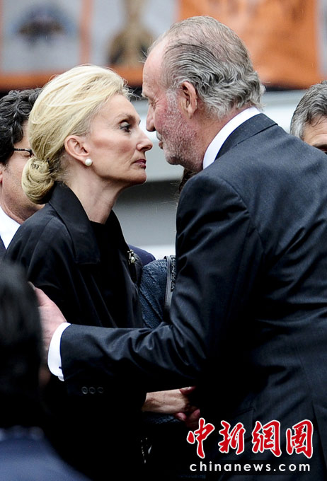 圖為西班牙國王卡洛斯問候薩馬蘭奇先生的女兒。