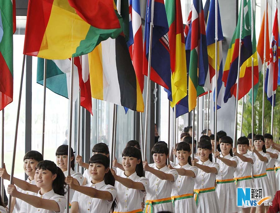 5月1日,中國2010年上海世博會開園儀式在上海世博園世博中心舉行。這是參展方旗幟方隊入場。 裴鑫 攝(新華網(wǎng))