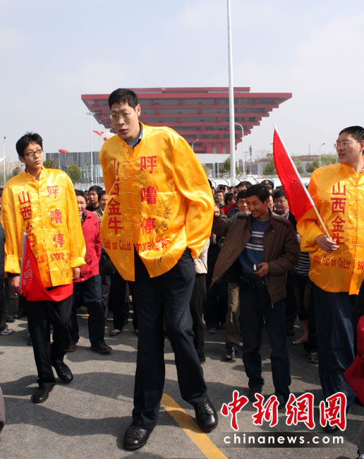 5月1日,三位平均身高2.30米以上的中國巨人到上海世博園區(qū)參觀中國館,吸引了眾多游客好奇的目光。當(dāng)日,上海世博會(huì)正式開園。中新社發(fā) 湯彥俊 攝