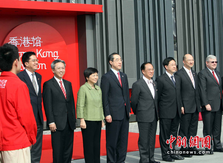 5月1日,上海世博園內(nèi)的香港館開(kāi)幕,香港特首曾蔭權(quán)(右四)率特區(qū)政府官員出席開(kāi)幕儀式。中新社發(fā) 洪少葵 攝