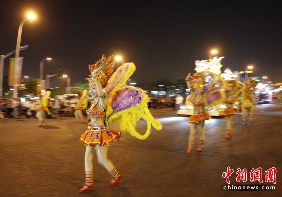 5月2日晚,由一輛輛充滿異域風情的花車和身著盛裝的表演者組成的“歡樂盛裝大巡游”在世博園區(qū)舉行。中新網(wǎng)記者 盛佳鵬 攝
