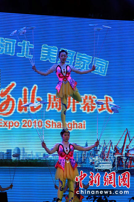 5月14日,上海世博會“河北活動周”在寶鋼大舞臺啟幕,戰(zhàn)鼓、旱船、拉花、草編、石雕、年畫、雜技、皮影戲……燕趙大地的傳統(tǒng)絕活一一登場!昂颖被顒又堋弊14日持續(xù)至18日,將圍繞“京畿神韻”的主線,向世界展示河北省的經(jīng)濟和藝術(shù)魅力,是繼直轄市北京、天津之后,第一個由省份在世博會上舉辦的活動周。中新社記者 殷春永 攝