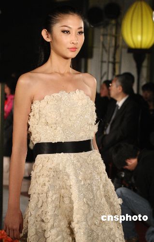 11月12日晚,MOISELLE (慕詩(shī)國(guó)際集團(tuán))慶祝成立10周年之際,特別選址于具有濃郁中國(guó)文化氣息的北京中國(guó)會(huì)(China Club) 舉行07年秋冬系列時(shí)裝發(fā)布會(huì),MOISELLE素來以時(shí)尚設(shè)計(jì)、優(yōu)質(zhì)布料、精致造工及高雅風(fēng)格見稱,塑造出典雅及女性化的風(fēng)格,圖為模特在U形天橋上完美演繹 MOISELLE‘07秋冬系列作品。中新社發(fā) 錢興強(qiáng) 攝