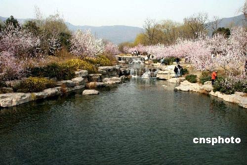 3月20日,北京植物園桃花盛開迎春爭艷,吸引了不少游客。中新社發(fā) 李遠志 攝
