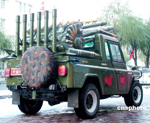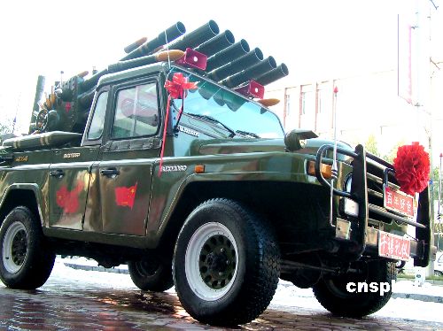 10月21日,一輛酷似軍用戰(zhàn)車的“禮炮車”出現(xiàn)在黑龍江小鎮(zhèn)。當(dāng)日,黑龍江省牡丹江地區(qū)的穆棱市八面通鎮(zhèn)上,一家婚慶禮儀公司推出婚慶“禮炮車”服務(wù)項(xiàng)目,頗讓生活在小鎮(zhèn)上的居民感到新鮮。中新社發(fā) 莊文斌 攝