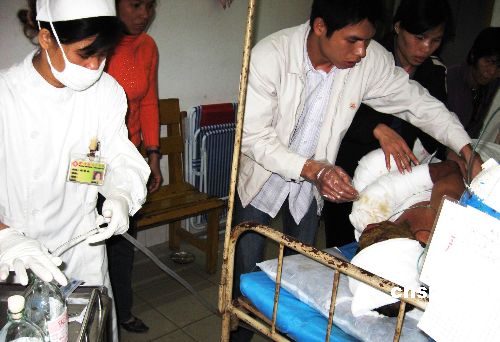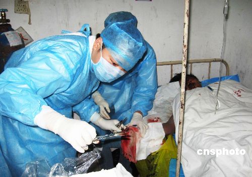 十一月二十四日,廣西北海市合浦縣一家據(jù)稱未經(jīng)當(dāng)局批準(zhǔn)開(kāi)設(shè)的私營(yíng)爆竹廠發(fā)生重大爆炸事故,目前已知至少有三人在是次事故中不幸罹難,另有十三人受傷,其中有多名傷員處于生命垂危狀態(tài)。圖為合浦縣人民醫(yī)院在緊急搶救傷員。中新社發(fā) 肖林 攝