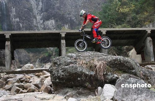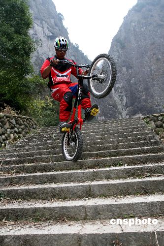 12月18日,創(chuàng)造了自行車攀登高樓吉尼斯世界新紀錄的“溫州小子”張金成,為即將舉行的“金茂巔峰對決 攜手共迎奧運——2008金茂大廈國際自行車攀樓挑戰(zhàn)賽”進行各式各樣的體能及技巧訓練。此次挑戰(zhàn)張金成的是來自哥倫比亞運動員加維爾·薩帕塔、安道爾運動員夏維·卡薩斯,張金成對即將到來的“巔峰對決”感言:“目前最要緊的是心態(tài)要調(diào)整好,2008一定成功!”中新社發(fā) 陳昌其 攝