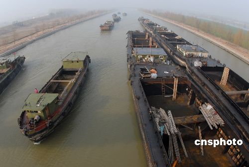 12月22日,上百艘船只開始過閘。當日,被譽為“江北第一閘”的京杭運河山東臺兒莊船閘汽笛爭鳴,百舸爭渡上演“過閘大戲”。由于連日濃霧,能見度不足20米,萬年船閘和臺兒莊船閘全線停止放船,上百艘船只滯留在航段內。中新社發(fā) 高啟民 攝