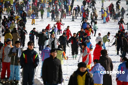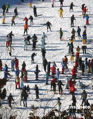 圖:北京市民扎堆劃雪場(chǎng)健身迎新年