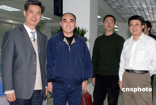 1月7日,乒乓球前世界冠軍莊則棟(左二)做客中國(guó)新聞社時(shí),在中新社社長(zhǎng)郭招金(左一)等人陪同下參觀中國(guó)新聞網(wǎng)。中新社發(fā) 鄒憲 攝