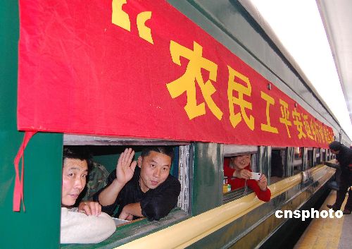 圖:廣州發(fā)出今春首趟珠三角農(nóng)民工返鄉(xiāng)專(zhuān)列