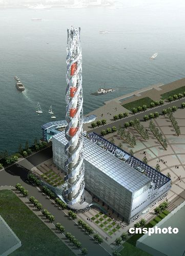 一月十四日,上海世博局公布,“世博和諧塔”將落戶中國(guó)二0一0年上海世博會(huì)園區(qū),由當(dāng)?shù)乩蠌S房煙囪改建而成。這一外觀新奇的煙囪狀“世博和諧塔”,建成后將集互動(dòng)娛樂(lè)于一身,成為五點(diǎn)二八平方公里世博園內(nèi)的一個(gè)觀景制高點(diǎn)。施工方透露,“世博和諧塔”每小時(shí)載客量預(yù)計(jì)可達(dá)六百五十人以上,夜間景觀則更加光彩奪目,有望成為黃浦江畔的時(shí)尚新地標(biāo)。(效果圖) 世博局 供圖