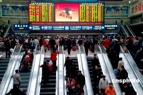 1月20日,北京西客站的候車室和候車大廳里擠滿了準備回家過年的旅客。從1月18日開始,2008年中國鐵路春運提前啟動以來,北京西客站等火車站迎來春運高峰。中新社發(fā) 楊慧峰 攝