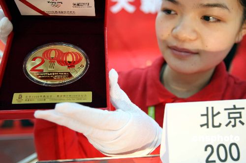 1月21日,正值北京奧運會倒計時200天,奧運會特許商品旗艦店舉行徽章、郵品、貴金屬等以奧運倒計時為主題的新品銷售活動,吸引了大批收藏愛好者。中新社發(fā) 任海霞 攝