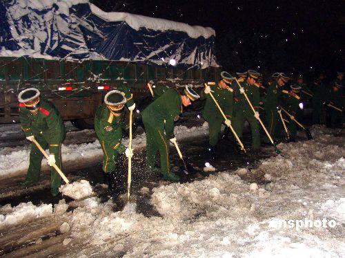 圖:武警官兵南京長(zhǎng)江二橋抗擊雪災(zāi)確保交通暢通