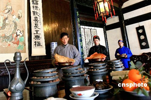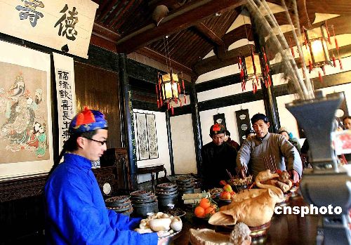 1日31日,三位穿著清代服裝的男演員分別代表祖孫三代,在浙江紹興市區(qū)的魯迅祖宅內(nèi)彩排過“小年”習俗。當日是小年夜后的第一天,按紹興傳統(tǒng)小年夜要舉行祝福祭祀,這一習俗因魯迅筆下的《祝!范劽珖。中新社發(fā) 袁云 攝