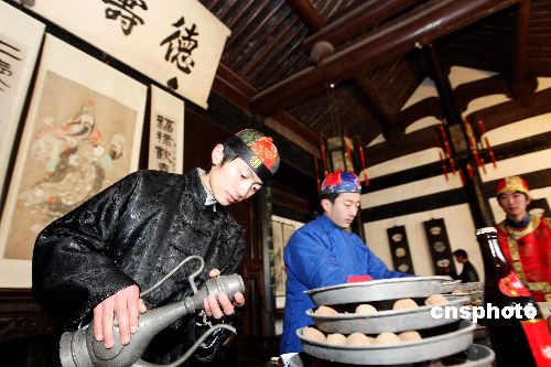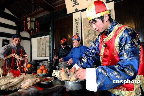2月8日,紹興魯迅故里舉行“祝!奔漓牖顒。當日是農歷正月初二,浙江紹興魯迅故里在周家老臺門模仿魯迅小說《祝!返膱鼍埃瑥恼鲁跻恢脸跷迕刻爝M行紹興傳統(tǒng)年俗“祝!眻鼍氨硌荨=B興的年俗“祝!币螋斞感≌f而名揚天下,浙江省將紹興魯迅故里“祝!倍槲┮坏拇汗(jié)保護示范地。中新社發(fā) 袁云 攝