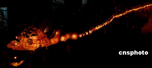 2月13日晚,在江西婺源清華鎮(zhèn)街頭,200余名農(nóng)民舞動(dòng)著長(zhǎng)近200余米的“板凳龍”。據(jù)悉,該制品由200多個(gè)花燈和上百個(gè)農(nóng)家板凳連接而成。中新社發(fā) 王國(guó)紅 攝