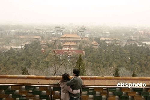 2008年3月1日,北京的天空告別連日的晴朗,淡黃色的浮塵籠罩了北京大部分地區(qū)。據(jù)北京氣象部門介紹,2月29日,甘肅南部、內(nèi)蒙古西部出現(xiàn)沙塵天氣,大量浮塵升到高空,在西北氣流作用下向東南方向轉(zhuǎn)移,3月1日上午,北京周邊的內(nèi)蒙古西部、山西及河北北部仍然在持續(xù)沙塵天氣,沙塵隨著東移南下的冷空氣飄至京城。 中新社發(fā) 魯谷 攝
