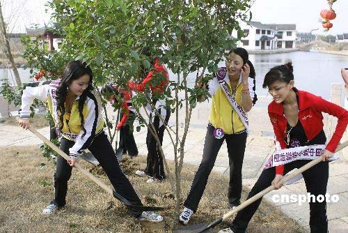 3月12日植樹節(jié),參加2008國際旅游小姐中國總決賽的30多名選手,在浙江古鎮(zhèn)西塘開展了植樹活動,姑娘們開心地種上一棵棵桂花樹,增強了綠色環(huán)保意識。2008國際旅游小姐中國總決賽晚會將于3月15日舉行,產生的冠軍將代表中國參加全球總決賽。中新社發(fā) 劉鷹 攝