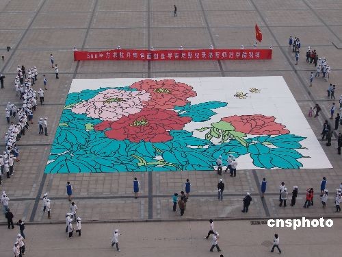 圖:世界最大的牡丹填色畫在洛陽誕生