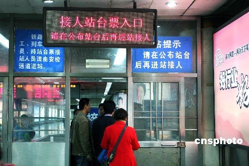 4月9日從北京站和北京西站獲悉,隨著奧運會臨近,北京鐵路安保提前進入奧運狀態(tài),進入售票大廳買票的旅客和進站臺接站人員及列車工作人員,均要逐一接受安檢。據(jù)稱此舉為與奧運安保接軌,進入“奧運安檢模式”。中新社發(fā) 追影 攝