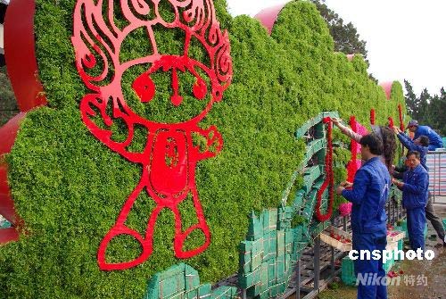 圖:天壇公園巨幅花壇迎接奧運測試賽