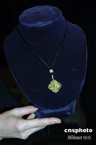 4月27日,香港佳士得2008春季拍賣精品在上海外灘茂悅大酒店預(yù)展。這場(chǎng)拍賣會(huì)將于5月22日至29日在香港會(huì)議展覽中心舉行。這次拍賣大約分為14個(gè)不同類別,包括多件收藏珍品。在5月28日“瑰麗珠寶及翡翠首飾”專場(chǎng),拍品包括重67.09克拉的罕見黃鉆吊墜一對(duì),估價(jià)為1600萬到2500萬。中新社發(fā) 崔煜芳 攝